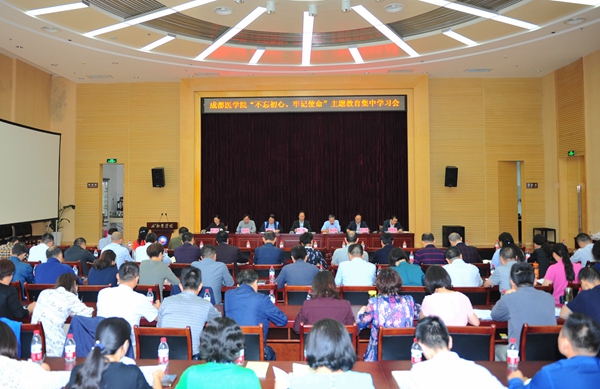 在第一次集中学习会上,党委副书记、纪委书记董永超领学了《习近平总书记在“不忘初心、牢记使命”主题教育工作会议上的重要讲话》;副校长唐平领学了《习近平总书记在中央政治局第十五次集体学习时的重要讲话》;副校长卯辉领学了《习近平总书记在视察北京香山革命纪念地时的重要讲话精神》;副校长潘克俭领学了《习近平总书记在内蒙古考察并指导开展“不忘初心、牢记使命”主题教育时的重要讲话》;校党委常委,党委宣传部、党委统战部部长陈喆传达了《彭清华同志在省委十一届五次全会暨全省“不忘初心、牢记使命”主题教育工作会议上的讲话精神》;校党委常委、组织部部长王计生向与会人员传达了《成都医学院开展“不忘初心、牢记使命”主题教育实施方案》。