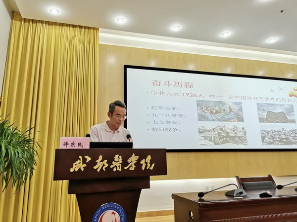 活动中,许东民向同学们介绍了什么是共产党,以及马克思主义创始人马克思、恩格斯以及伟大纲领《共产党宣言》,简述近代中国的历程,和同学们一起回顾了中国共产党的光辉岁月。