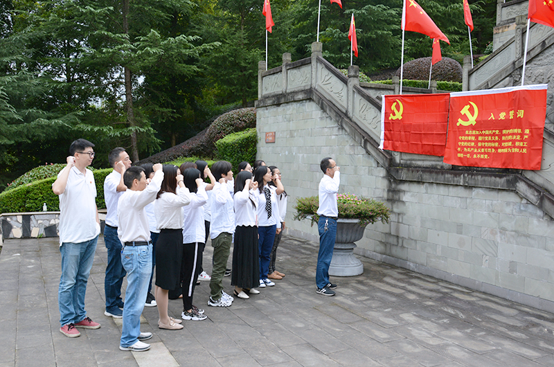 陈毅故里是省级文物保护单位,是全国爱国主义教育和精神文明教育基地。党员同志们怀着对革命前辈无限敬仰之情到陈毅故里参观学习,并在“黄桥决战”浮雕前重温入党誓词:“我志愿加入中国共产党,拥护党的纲领,遵守党的章程。履行党员义务……”声音铿锵,句句千钧。