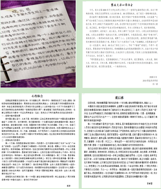 从学生的讨论中可以看到,同学们对这次“全国大学生同上一堂疫情防控思政大课”给予高度的评价和认可,本次大课及课后讨论非常及时,它点燃了大学生爱党爱国爱社会主义的热情,坚定了“四个自信”,激发广大学生的民族自豪感,激励了学生勇于担当的责任意识。