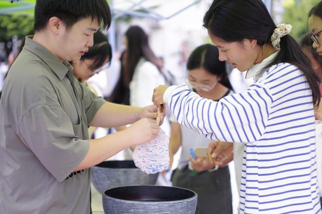 活动现场,师生们亲手制作精美花灯,积极参与灯谜游戏,在动手与动脑中感受传统民俗的独特魅力;剪纸拼图区域里,大家沉浸于创作,在剪纸的裁剪与拼图的组合中锻炼动手能力与创意思维;古诗词飞花令环节,师生们在诗词的交锋对答中,领略传统文化的博大精深;非遗拓印体验和非遗漆扇制作,让大家近距离接触非遗技艺,感受传统工艺的精湛。活动现场气氛热烈,师生们热情投入,或因完成一件精美手工作品而喜悦,或因猜中灯谜、诗词对答成功而欢呼,在多元活动中沉浸式体验双节文化的深厚内涵。最终,在同学们的意犹未尽与满满文化收获中,本次活动圆满结束。