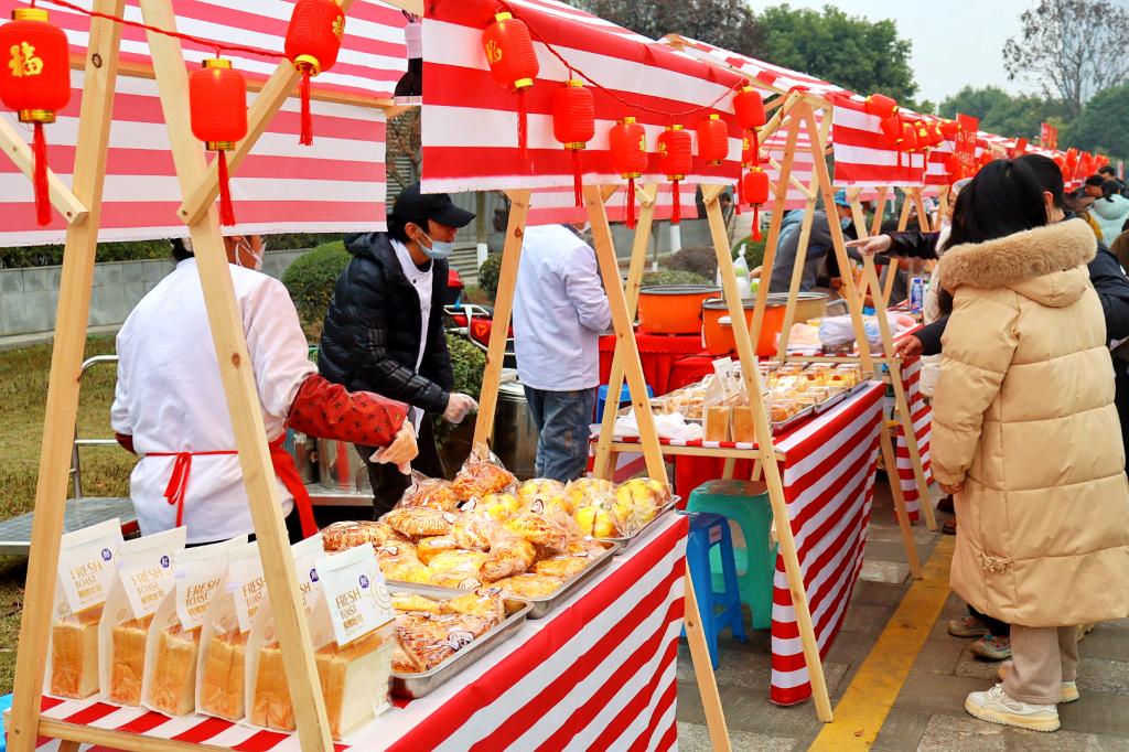 特别引人注目的是,今年活动增设了特色美食街区,巧妙地将“食”与“游”相结合,为传统的游园注入了全新的活力与烟火气。甜滋滋的糖葫芦、热腾腾的关东煮、香喷喷的烤肉串……一列列排队的长龙,是师生们对这份“惊喜”的热烈回应。各式美食不仅满足了味蕾,更成为了冬日游园会传递幸福感、提升欢乐感的“催化剂”。学校第一附属中医医院、新都区中医医院、“引航”青少年中医药文化科普基地也带来中药香囊、中药手串、中药茶饮等特色展台,以传统中医养身防病的智慧为校园集市增添了浓郁的文化韵味。