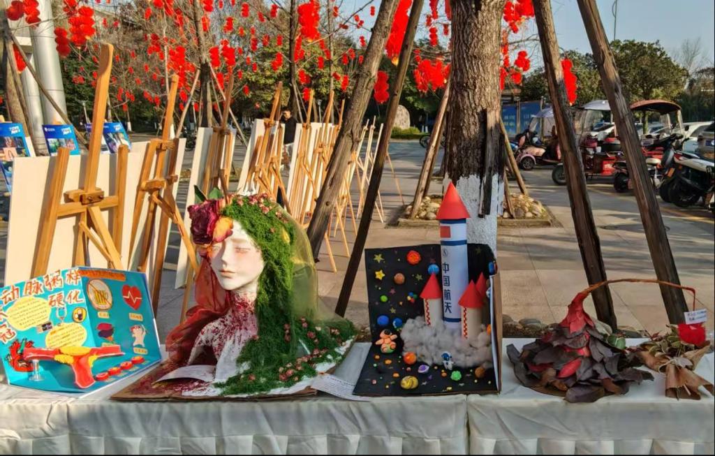 近日,由校团委主办、生物科学与技术学院团委承办的成都医学院第十届大学生艺术节设计大赛决赛评选与作品展示活动在校园食堂门口举行。现场展出了众多充满巧思的学生创作,吸引了大量师生驻足欣赏。党委书记来建、副校长王计生等校领导亲临现场,逐一观看了决赛作品,并与参赛学生进行了亲切交流。领导们对大赛在激发创意、美化校园、推进文化建设方面的积极作用给予了高度评价,并鼓励同学们继续发扬创新精神和动手能力,将艺术创意融入专业学习与日常生活。