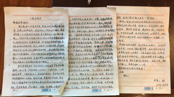 “敬爱的党组织,我志愿加入中国共产党,愿意为共产主义事业奋斗终身,我衷心的热爱党……请党组织考验我!”“作为一名重症医学科护士,我会更加努力地工作”“我决心用自己的实际行动接受党对我的考验!”2月14日,到达武汉后的第一天,成医附二院·核工业四一六医院援鄂医疗队的于丹和伍瑶两名同志却起了个大早,怀着无比激动的心情,写下了入党申请书。