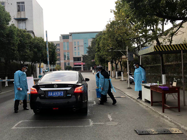 严格管控,实行校门临时管理制度。严重的疫情当前,保卫部高度重视,多次召开专题部署工作会,印发《关于进一步加强校门管控的通知》,在学校各校门进行张贴;严格执行校门临时管控措施,迅速关闭各进出校门通道,仅留西大门作为唯一进出通道,抽调4名骨干人员进行严格值守,筑牢第一道防线。严禁校外人员入校,对留守校内的师生发放临时通行证,对每一次进出校门师生严格进行体温测量和登记,对进校车辆的做好消毒防疫工作。