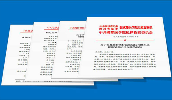疫情发生后,为让全校师生员工令行禁止、步调一致,机关党委教工第三党支部所属驻成医纪检监察组办公室、校纪委办公室,认真落实派驻纪检监察组、校纪委的指示,加大监督力度,坚持严防形式主义和官僚主义,按照学校统一部署安排,认真履行职责,积极开展监督工作。