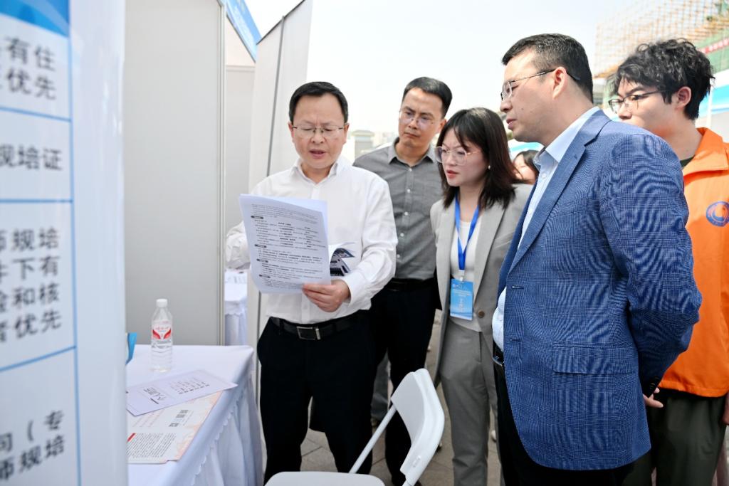 学校党委书记来建,党委常委、副校长王计生深入双选会现场走访用人单位展位,详细了解企业人才需求和行业发展动态。学校相关职能部门负责人、各二级学院分管负责人及毕业年级辅导员等“现场办公”,面对面向用人单位推介毕业生,深度推进校企合作,指导毕业生求职应聘。