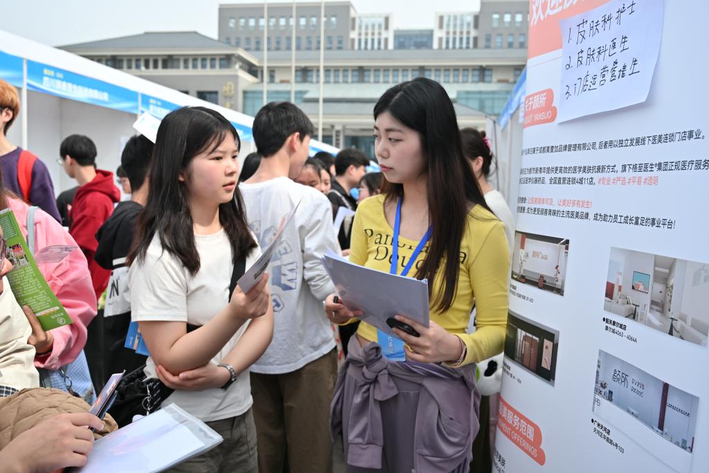 为提升“双选”效率,学校就业服务平台增设“岗位收藏”“简历预投”等功能,用人单位在发布岗位信息后可提前查阅毕业生简历预投情况,赋能“双选”提质增效,参与学生达3000余人次。同时,双选会现场设置“大学生村医招聘政策宣讲区”“就业创业政策咨询区”“应征入伍政策咨询区”“简历指导区”“面试技巧指导区”“简历打印区”等一站式服务区,从就业创业政策解读、大学生入伍、职业规划、简历制作等方面为学生提供“一对一”精准指导,助力学生充分就业。“学校从职业规划到就业推荐的全链条服务,让我们求职更有底气!”智能医学工程专业毕业生江冰在签约后感慨道。