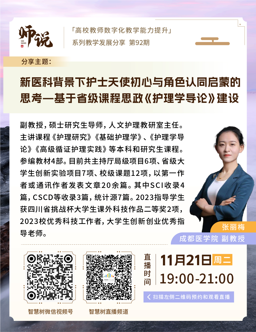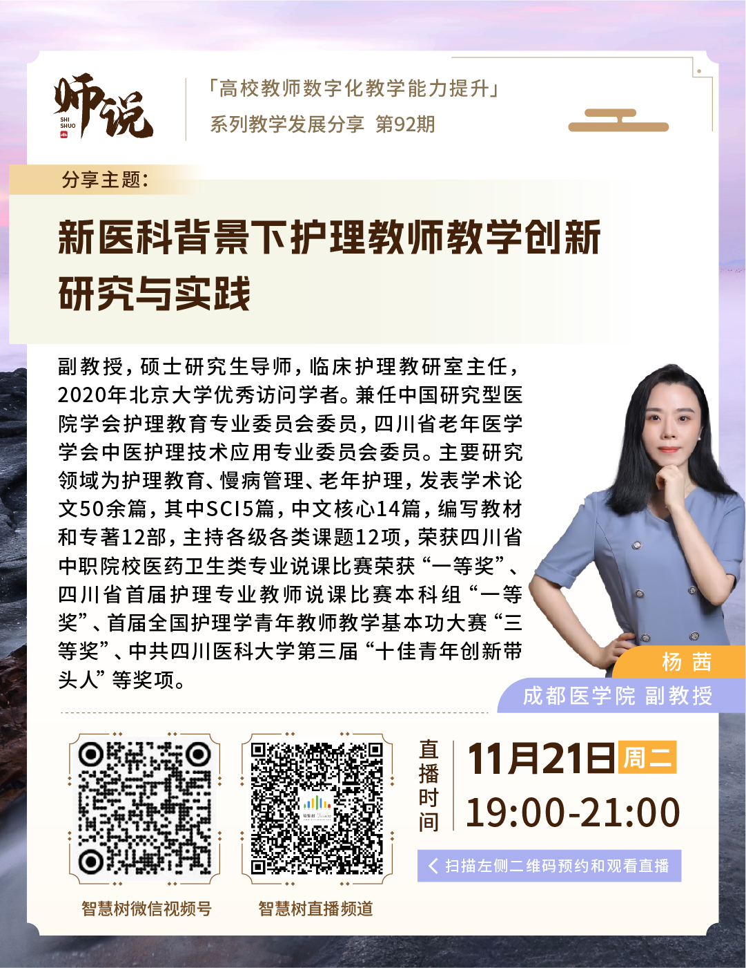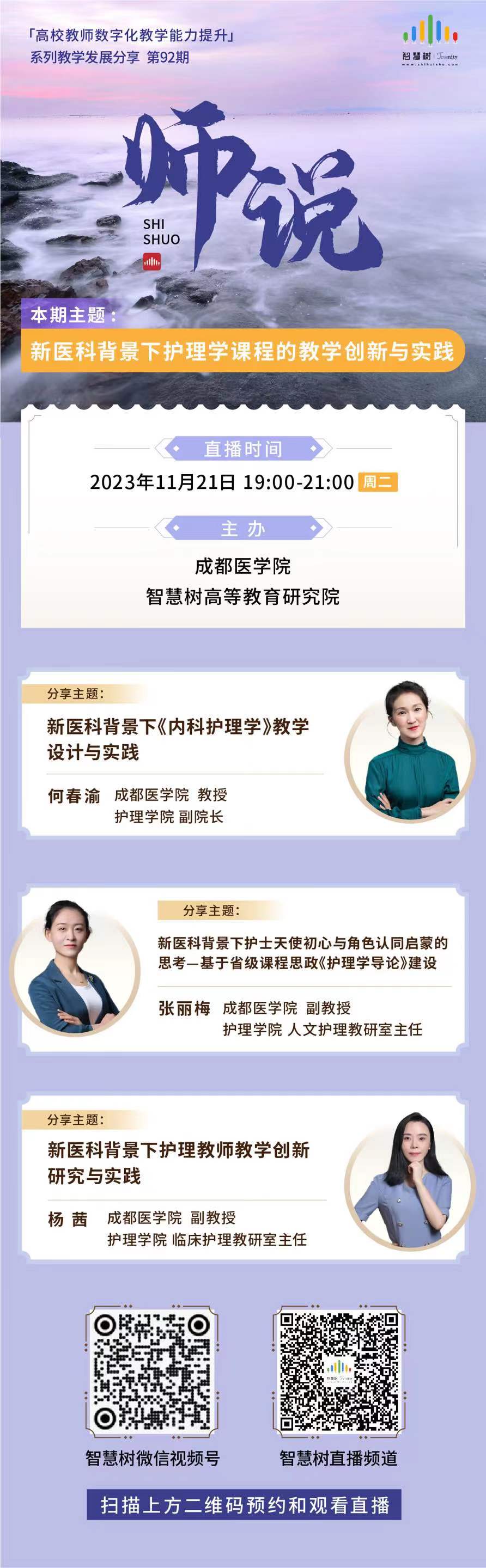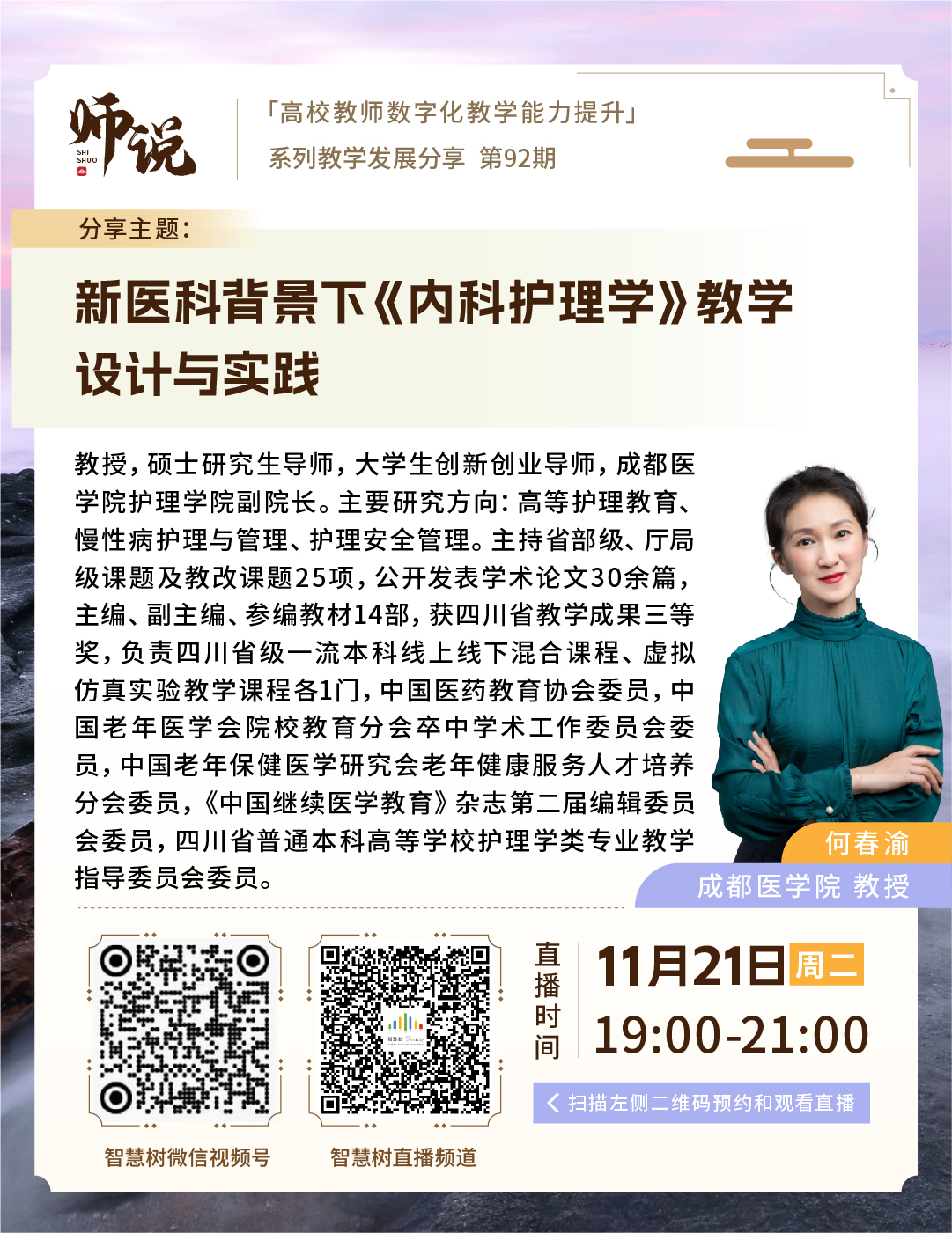 高校教师数字化教学能力提升系列教学发展分享第92期:新医科背景下护理学课程的教学创新与实践