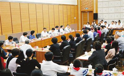 随后,习近平同教师学生代表座谈。八一学校校长沈军、八一学校教师张亚红、首都经贸大学教授纪韶、八一学校学生牟迪铃和方亦昕先后发言,他们谈教育管理、谈教书育人、谈理想追求、谈学习生活,习近平不时插话交流,现场气氛活跃。