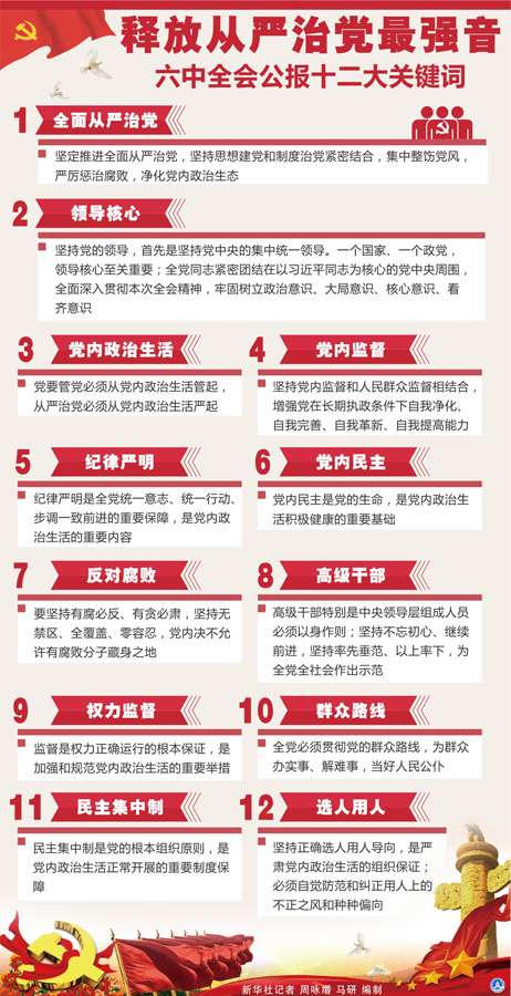图表:释放从严治党最强音——六中全会公报十二大关键词 新华社记者 周咏缗 马研 编制