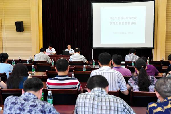 6月16日下午,成都医学院党委中心组召开“两学一做”学习教育专题学习(扩大)会,对“习近平总书记治国理政新理念新思想新战略” 进行专题学习辅导。会议邀请了省委党校科学社会主义(政治学)教研部副主任郭从伦教授作专题辅导讲座。校党委书记凌保东主持会议。学校党委常委、委员,副处级及以上领导干部,各基层党支部书记,思政部无课教师参加会议。