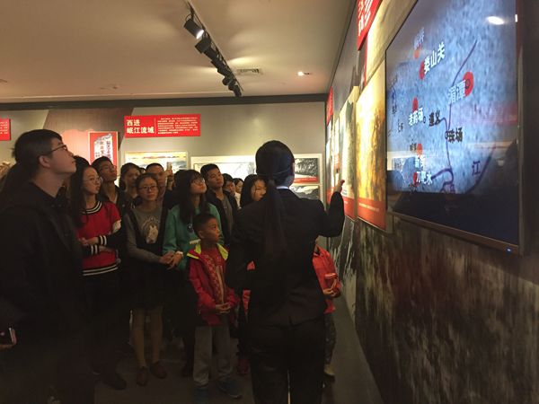 参观活动由馆内工作人员负责解说,生动地还原了历史上红一、红二、红四、红六等长征部队爬雪山,过草地,跨大江,饮风雪的艰难困苦长征之旅,两万五千里长征的行军路线在地图上蜿蜒曲折,令人震撼。工作人员还详细介绍了以毛主席为核心的党领导干部带领红军战士智渡金沙江,飞夺泸定桥,四渡赤水出奇兵等可歌可泣的英雄事迹与奠定江山的战略成就。一幅幅图片,一张张旧照,为大家再次展现了过去的峥嵘岁月,彰显了长征中的红军战士不怕吃苦,不畏强敌的顽强意志和气壮山河的牺牲精神,同时也让大家认识到现今和平生活的来之不易,以及长征精神永垂不朽。