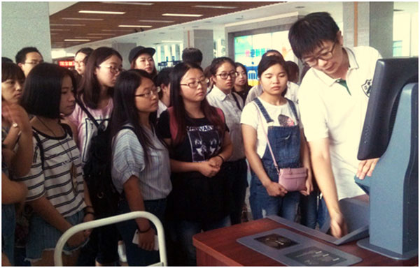 在现场参观中,各班分组,由馆员分批次带领新同学参观图书馆的各个楼层及馆藏图书区域,了解图书馆功能布局,认识中国图书分类法,主讲馆员还现场演示了自助借还机、阅报机、电子图书借阅机、查询机等现代化设施设备的使用等,引导新同学进一步认识图书馆。