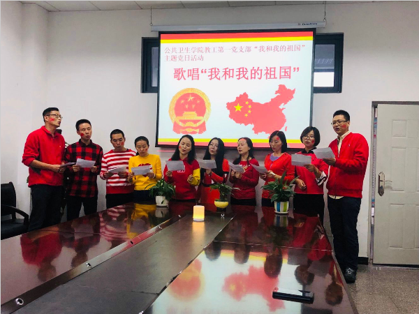 为庆祝新中国成立70 周年,弘扬爱国精神,回顾新中国成长壮大的光辉历程,扎实开展“不忘初心、牢记使命”主题教育, 根据学校统一安排,9月26日,公共卫生学院党总支教工党支部开展庆祝新中国成立70周年“我和我的祖国”主题党日活动。