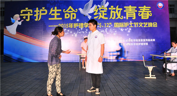 2015年是国际护士节104周年,这是属于全世界护士的共同节日,是为了纪念近代护理的创始人----英国护士弗洛伦斯•南丁格尔而设立的。 5 月12日 ,成都医学院护理学院举行了以“守护生命,绽放青春”为主题的大型文艺晚会,旨在传承与弘扬南丁格尔救死扶伤的人道主义精神和为护理事业无私奉献的高尚品质,同时展示护理学子们良好的精神风貌和专业风范,晚会上还举行了护生授帽仪式。学校宣传统战部、学生处、校团委领导,药学院、继续教育学院及护理学院的领导出席了本次活动。