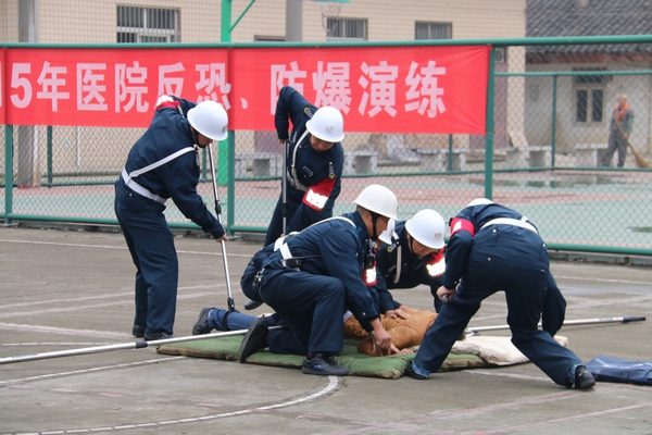 为切实强化医院安保工作,提升对突发性暴恐事件和火灾的反应和处置能力,11月19日下午,第一附属医院举行2015年反恐、防爆及消防灭火演练。医院院长夏保京、纪委书记杨建,全院各科室安全员、部分休班教职员工、在院学生、保安队员、后勤工人等约200人参加观摩。