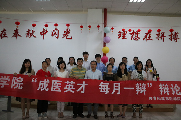 5月12日中午12时30分,校团委主办的2016年成都医学院“成医英才 每月一辩”辩论赛复赛第一场在大学生活动中心火热开赛。思政部李保国博士、人文学院冯曦兮老师、校团委张婉杨老师、学生处程兰老师以及宣传部王海川老师担任本场评委,校团委书记彭成静老师出席活动。