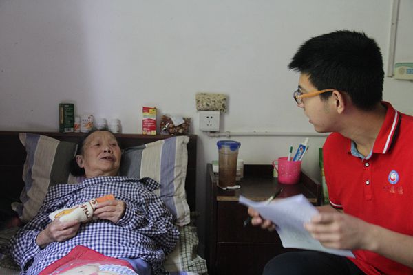 志愿者两人一组,与老人交流,展开心理干预、精神慰藉、康复指导,并进行健康体检、健康知识讲座等活动,同时开展“养老机构开展为老服务情况”、“养老机构老年人养老服务需求”、“社区居民居家养老意愿和养老服务需求”等专项调研。
