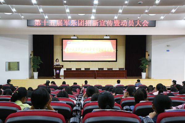 9月26日中午,成都医学院第十五届军乐团招新宣传暨动员大会在学术交流中心召开。学生处、校团委、基础医学院负责人,辅导员老师、基础医学院2016级新生和第十四届军乐团代表出席了此次大会。