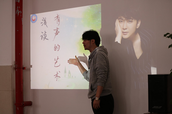 为了丰富校园文化生活,提高我校青年学生艺术修养,让拥有表演、播音梦想的同学提高相关技能,11月9日中午,一场由校团委主办的、社团联合会承办的小型艺术交流会在大学生活动中心展开,活动邀请了毕业于中央戏剧学院的中国总政话剧团青年演员、第三届中国国际微电影节最佳男主角——刘明瓒老师为同学们做了一场主题为“有声的艺术”的交流会,学生处刘萍老师、李晋川教授、团委刁穗老师、教务处赵静老师和我校喜爱表演、播音主持的同学参加交流会。