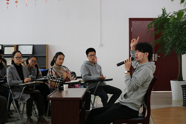 面对难得的机会,师生们就自己的困惑纷纷向刘老师提出问题,如何利用专业的技巧保护嗓子、影视剧中的表演和话剧表演有什么不同、话剧中的配角如何做到不抢戏等等,面对师生的提问,刘明瓒老师一一给予了认真回答。最后应同学们的要求,刘老师还表演了自己参演的剧目中的一小段。