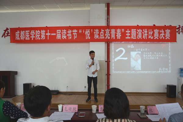 5月10日中午,由校团委和图书馆联合主办的2017年成都医学院第十一届读书节“‘悦’读点亮青春”主题“悦读”系列活动之“阅智慧·青春之言”读书演讲比赛决赛在大学生活动中心举行。经过激烈地角逐,2014级临床医学院临床医学杨杰同学获一等奖,生物医学系2015级生物制药专业蒲彧等10名选手分获二、三等奖和优秀奖。
