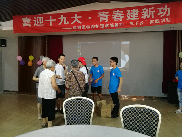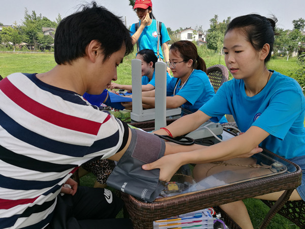 为展现护理学院学生良好的精神风貌,丰富学生社会实践经验,提高学生综合素质,7月10日至12日,成都医学院护理学院“爱之翼”社会实践服务团队在成都市郫都区三道堰镇青杠树村,开展“三下乡”社会实践活动。本次活动以“喜迎十九大,青春建新功”为主题,共有37名志愿者以及3名带队老师参与活动。