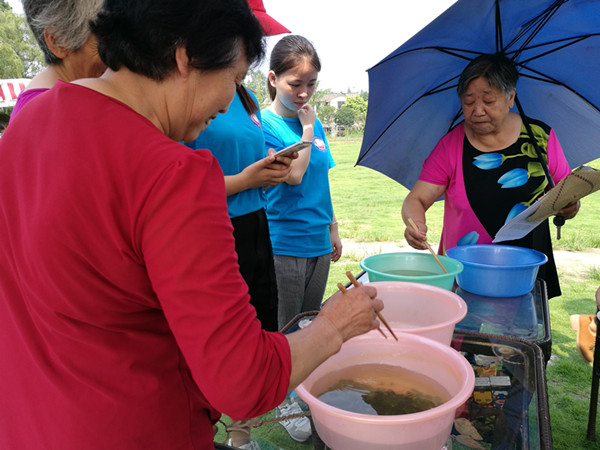 11日,志愿者们在青杠树村进行了预防艾滋病的宣传活动,用医学生的专业知识,为大家科普宣传。志愿者还在青杠树村景区文化大舞台处举办禁毒防艾知识趣味大讲坛和一系列趣味小游戏。志愿者们为现场游客和村民耐心宣讲禁毒的重要性,发放禁毒宣传单,免费为大家量血压,热情邀请大家参与趣味小游戏。“吃西瓜比赛”、“你画我猜之禁毒相关词语”、“禁毒防艾心愿墙”等游戏,都获得了现场观众的热烈响应,现场欢声笑语不断。禁毒活动使毒品的危害性与防艾的重要性更加深入人心,同时也使同学们的医学知识学以致用,更加贯彻了乐于助人的医学精神。