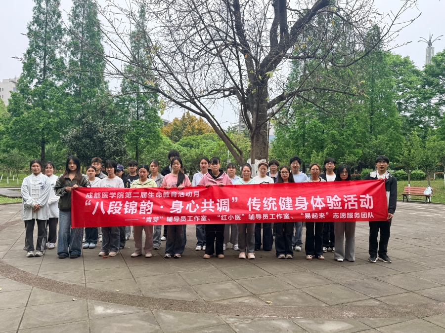 近日,成都医学院开展第二届生命教育活动月系列活动之“八段锦韵·身心共调”传统健身体验活动。本次活动由“青芽”辅导员工作室、“红小医”辅导员工作室与“易起来”志愿服务团队联合承办,分4期开展,累计参与逾200人次。