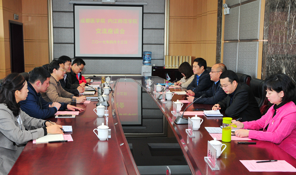 在内江师范学院,高宁一行与内江师院党委副书记、纪委书记史仕新及校办、党委宣传部、学生工作部、校地合作处相关人员就建校纪念活动进行了交流座谈。高宁介绍了成医历史沿革、发展现状、未来愿景,并表达了深化校际交流、促进合作共赢的愿望。座谈会上,围绕组织机构、人员分工、新闻舆论、文化建设、校园氛围营造、庆祝大会、纪念活动专题片、育人成果汇报演出、志愿者工作、校友接待等方面,从选题策划、筹备组织、执行完成、细节重点、失误环节等各个方面进行了深入交流。高宁要求,成医建校70周年纪念活动要充分借鉴其他高校的好做法,扬长避短,要把握重点、抓住关键、理顺流程、强化细节管理,争取把纪念活动做成“经典”。