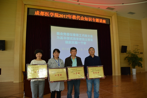 会上,校工会副主席蒋炳吉宣读了《关于表彰2016年成都医学院先进提案组织单位的决定》,对2016年教代会提案工作先进单位进行了表彰。检验医学院工会、机关工会、生物医学系工会、心理学系工会分别获得2016年教代会提案工作先进单位一等奖、二等奖、三等奖和优秀奖。