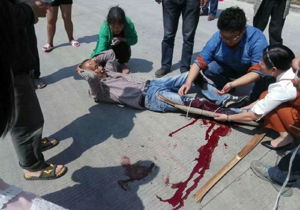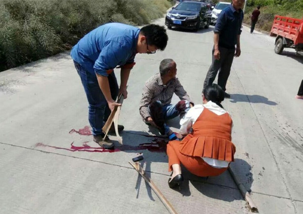 4月29日,烈日炎炎,在绵阳市三台县里程乡一道路上,一辆摩托车与拖拉机相撞,摩托车上的大爷受伤倒地。正在回家途中的成都医学院大一学生赖登龙见到后,立即上前和市民一同对其进行急救处理。“根据伤势,初步推断是骨折,我就采取了简单的急救措施帮他进行临时固定。”几分钟后,120救护车到了,医生向赖登龙询问止血情况后,将大爷抬上了救护车。