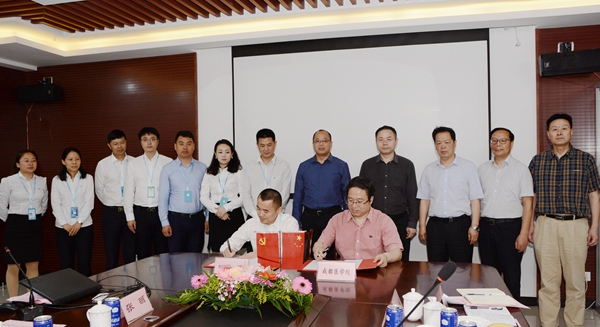 5月10日上午,成都医学院院长樊均明代表学院与四川九州通医药有限公司总经理吴海波签订了《战略合作框架协议书》。成都医学院党委副书记、纪委书记高宁,副院长周京国、唐平、卯辉,党委常委周光明等领导,党委办公室·院长办公室、教务处、国资管理处、科技处、基地教学与医院管理处、第一附属医院等单位相关人员与四川九州通医药有限公司相关人员参加了座谈会和签字仪式。