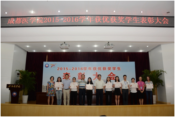 5月17日下午,由学生处(部)•团委和研究生处主办、学生资助管理中心承办的成都医学院2015—2016学年获优获奖学生表彰大会在学术交流中心召开。党委副书记郝明、副院长唐平以及宣传部、学生处(部)·团委、教务处、研究生处负责人参加表彰会并为获奖学生代表和先进集体代表颁奖。各二级院(系)党委副书记、学生科长、辅导员、获奖学生代表及普通学生代表共计260余人参加了会议。