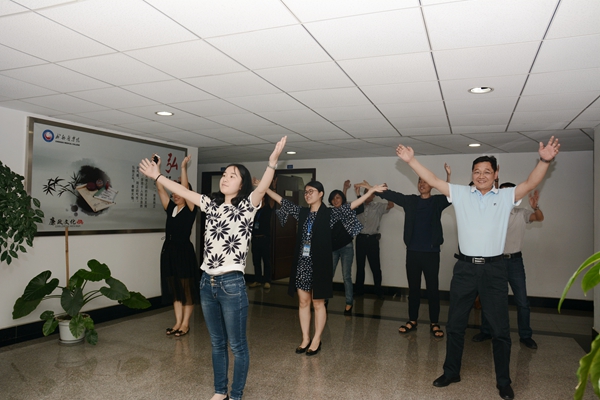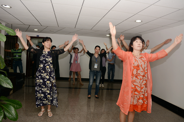 了解中发现,各部门高度重视工间操活动,领导带头积极参与,因地制宜利用办公场所,将工间操作为一项常态化工作来抓。当轻快的前奏音乐响起,教职工便自觉地走出办公室,伴随节奏明快的节拍,整齐划一地在走廊过道宽敞处做起广播体操。很多教职工表示,在做体操的过程中,通过一系列伸展、跳跃运动,身体各部分的关节、肌肉都得到了锻炼和舒展,在运动和出汗中身心得到了彻底放松,感觉特别的畅快,今后一定要养成坚持运动锻炼的良好习惯。