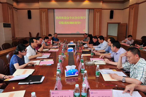 5月26日下午,金牛区人民政府副区长范家堂率区卫计局主要负责同志,区政府办、发改局、建交局、民政局、城管园林局、国土金牛分局、规划金牛分局、北部新城推进办、天回镇街办分管负责人一行,到成都医学院天回校区进行工作调研。成都医学院副院长卯辉,党院办、国有资产与设备管理处、基地教学与医院管理处、保卫处、后勤管理处、基建工程处、四川养老与老年健康协同创新中心、天回校区管委会、护理学院、继续教育学院、第一附属医院等单位和部门负责人参加调研。