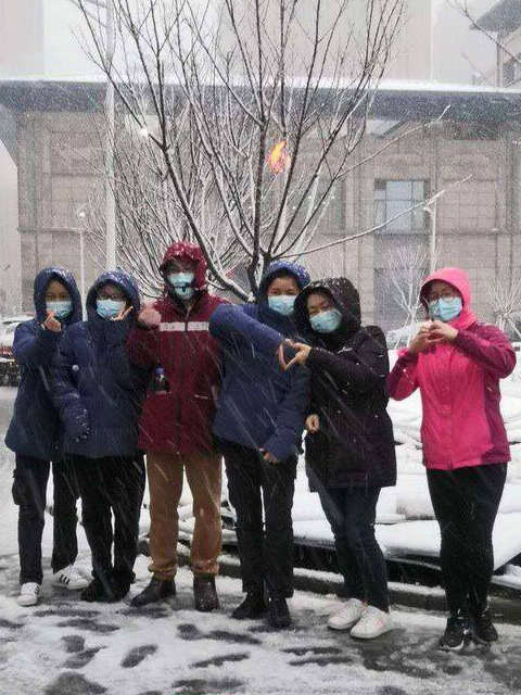 阮霞在驻地拍下的武汉的雪