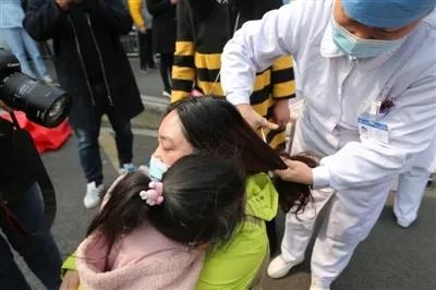 2月13日中午,核工业416医院·成都医学院第二附属医院心胸外科护士童雅萱在同事的帮助下,剪掉了长发,准备出征武汉一线,原本认为自己十分坚强的她,看到特意赶来送别的妈妈、丈夫和女儿,还是忍不住泣不成声。