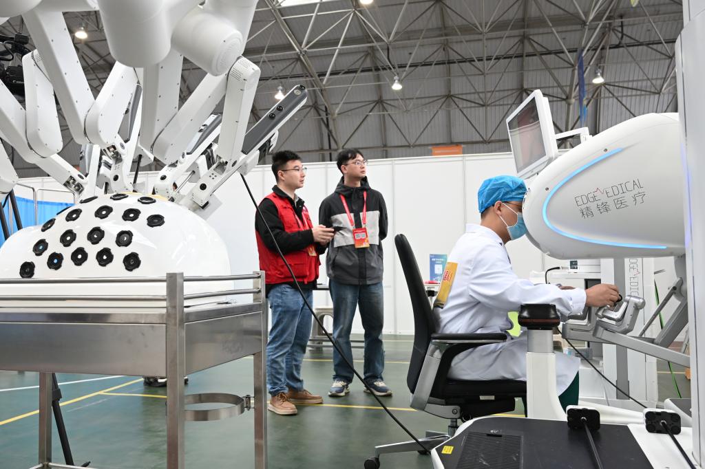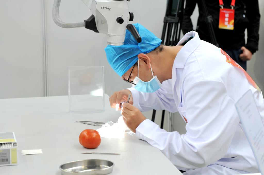 本届竞赛瞄准医学前沿,首次引入手术机器人操作比赛,选手使用胸腹腔内窥镜手术系统,通过机械臂精准完成夹取、缝合、打结等高难度模拟操作。竞赛中还设置“妙手精巧”挑战赛,选手在显微镜下用发丝般细的缝线,为鸭蛋开展“脑膜”移植模拟操作,兼具趣味性与专业性。