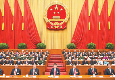 习近平、李克强、俞正声、刘云山、王岐山、张高丽和大会主席团成员在主席台就座。