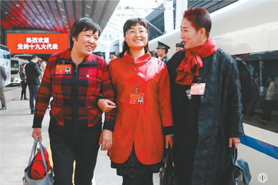 | 图①:来自山西省的十九大代表抵达北京。 人民视觉 |