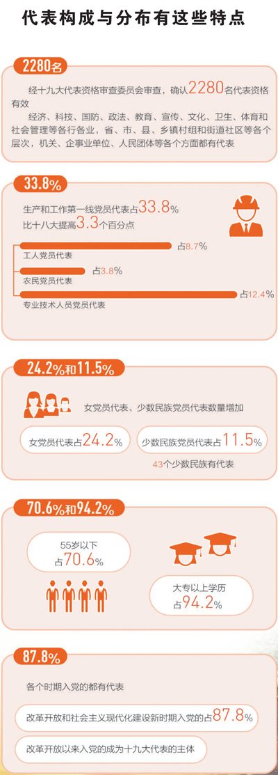 十九大代表的产生,坚持党的领导与发扬民主有机统一,采取自下而上、上下结合、反复酝酿、逐级遴选的办法进行,有5个主要环节: